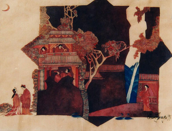 Lovers, France ink and colour on ricepaper 50x60cm |