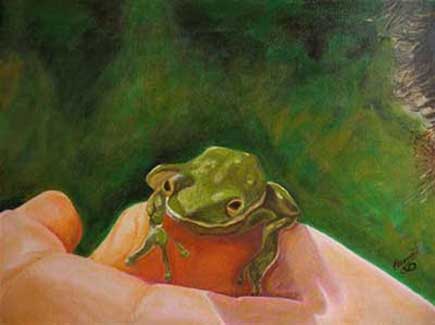 Frog Whisperer Oil and acrylic on canvas 46 x 61 cm |
