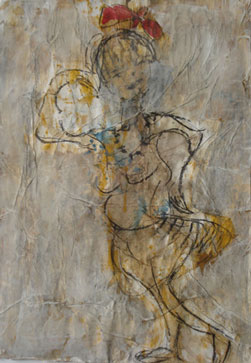 BamArt X, Rote Schleife, 2008 Pigmente, Kreide auf Papier 70x100cm |