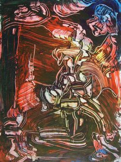 | Light in the material mixedmedia on cardboard, secret technique 70x35cm |