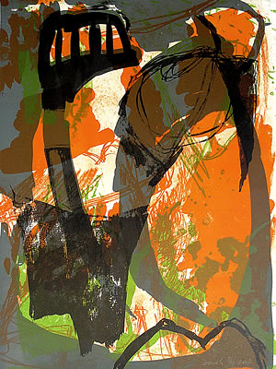 " Grün/Orange " 2008 Monotypie 62,5 x 48,3 cm