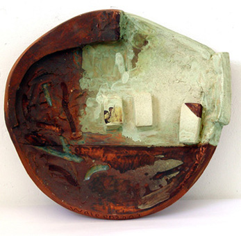 Vertical landscape ceramics ( clay with glaze) H 36 x W 12 cm