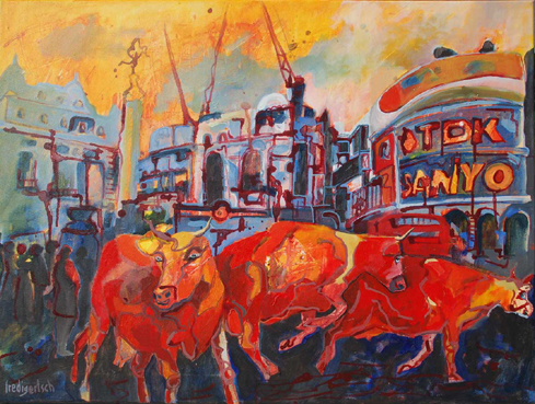Stadtkühe beim Picadilly Circus Acryl auf Leinwand 60x80cm