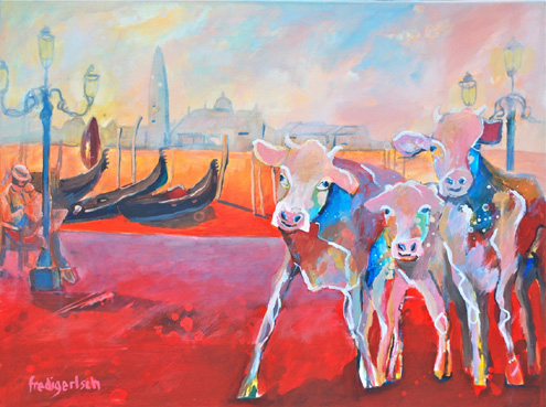 Stadtkühe in Venedig Acryl auf Leinwand 60x80cm