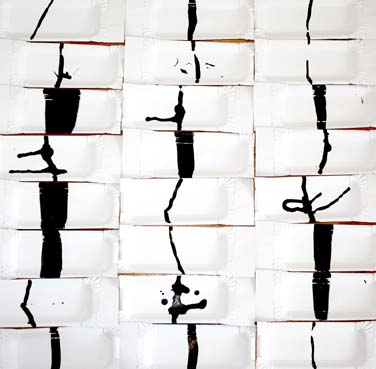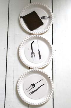 Detail aus der Serie: "Tischsitten" Tusche auf Papptellern 72 x 24cm