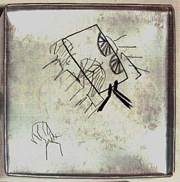 "Keinen Platz haben" Bleistift auf Blechdeckel 20 x 20cm