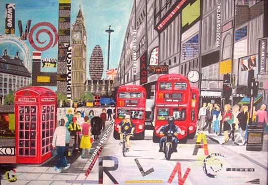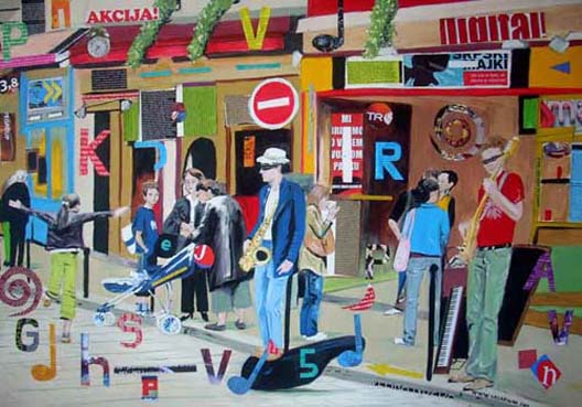 Street musicians Collage - oil on canvas 100 x 70 cm