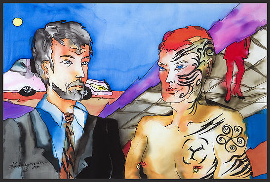 "Tatoo" painting on silk 60 x 90cm