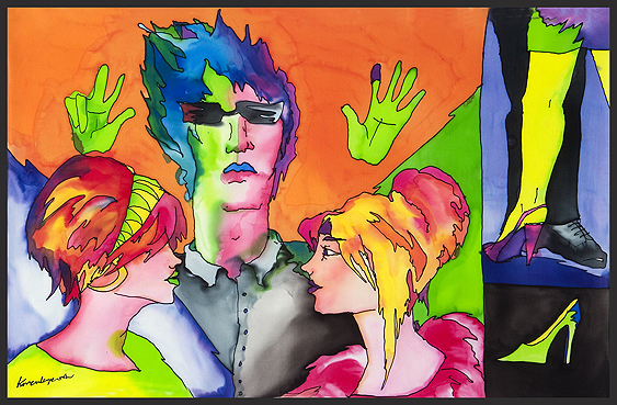 "Fan club" painting on silk 60 x 90cm