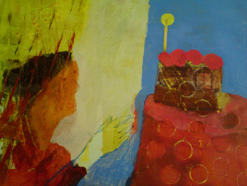 Blue ball dreams acryl on linnen 46 x 43 cm