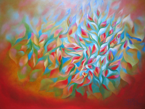 Capullos sobre rojo Oil on canvas 92 x 73 cm