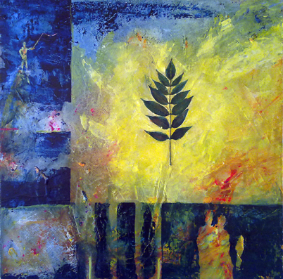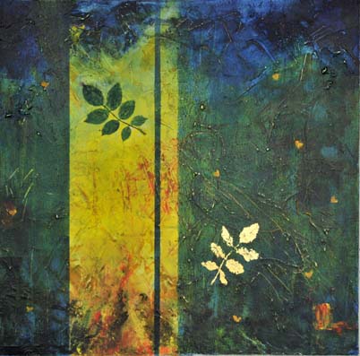 Roseleaf in gold and green Acryl and gold 50 x 50 cm