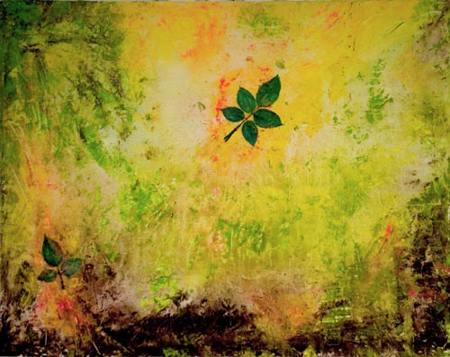 Leafs with 3 dimensions Acryl and gold 80 x 100 cm