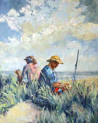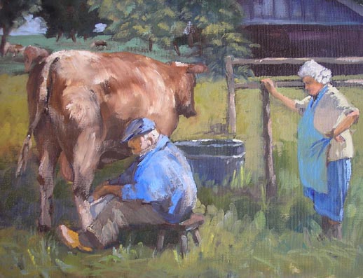 Morgenschwätzchen Ölfarbe 50x50 cm
