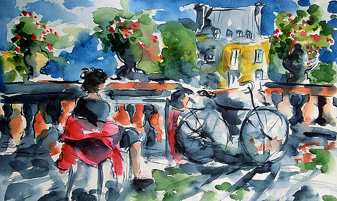 A quiet afternoon in Paris Watercolour 63x 41cm