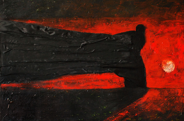 Die Quelle des Falken Acryl, Collagen auf Leinwand 73x54cm