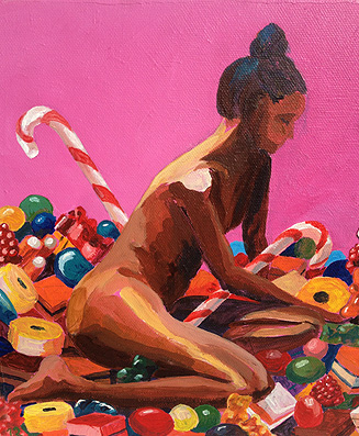 Süßigkeiten und Bonbons Acryl auf Leinwand 25x25cm