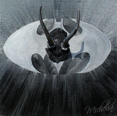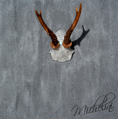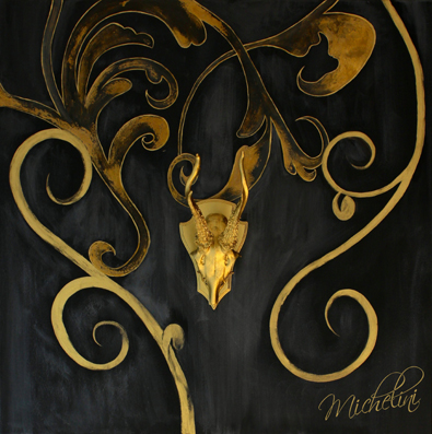 1700 Strass Steine, Geweih auf Leinwand, Oel, Metallacyrl
