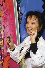 english deutsch Die finnische Malerin SOILE YLI-MÄYRY, Doktorin, die schon seit über 25 Jahren aktiv malt, benutzt einen Palettspachtel als Werkzeug in ihrer Malerei. Sie hat drei verschiedene Arten, mit Farbe zu arbeiten: eine dünne, gleichmäßige Schicht, dicke Striche und Striche in die bemalte Fläche zu kratzen, so daß das Bild eine dreidimensionale Wirkung bekommt. Als Hauptthema in ihren Werken hat sie Humanität und die Entfremdung des Menschen von der Natur in der urbanen Welt. Seit ihrem Studium an der Staatlichen Akademie der bildenden Künste in Stuttgart (1972-75) hat sie etwa 270 Einzelausstellungen in Japan, in China, in Indien, in Lateinamerika, in den Vereinigten Staaten und in mehreren europäischen Ländern gehabt.