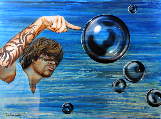 BLACK BUBBLES FLYING Acryl auf Leinwand 160x120x4cm