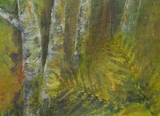 Farne u Birken Acryl/Collage 70 x 50 cm