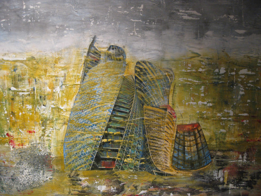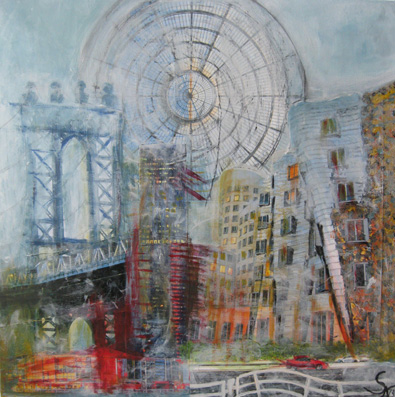 Urbane Impressionen Collage Papier-Acryl 60x60cm