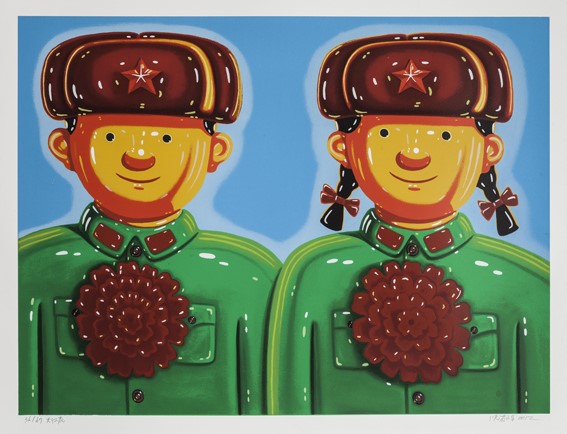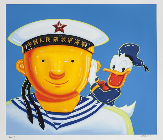Marinesoldaten und Donald Duck Siebdruck 60 x 80 cm