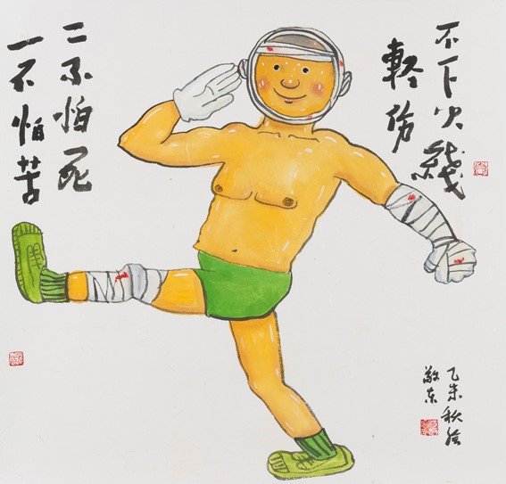 Verletzte Soldaten laufen im Paradeschritt Tusche auf chinesischem Papier 68 x 68 cm