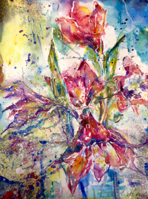 Amaryllis Acryl auf Aquarelltechnik 48 x 36 cm