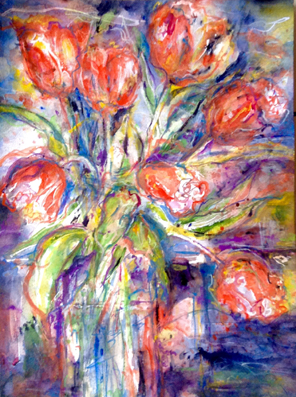 Tulpen Acryl auf Aquarelltechnik 60 x 60 cm
