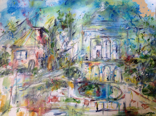 Schlossgarten Acryl auf Aquarelltechnik 64 x 50 cm