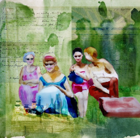 Digital Collage of Aquarell painting and digital background/ Plexiglas