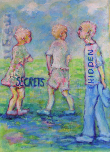 Secrets, 2007 Acrylic and collage on canvas H 24 x W 18 cm |