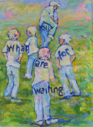 What Are You Waiting For, 2007 Acrylic and collage on canvas H 24 x W 18 cm |
