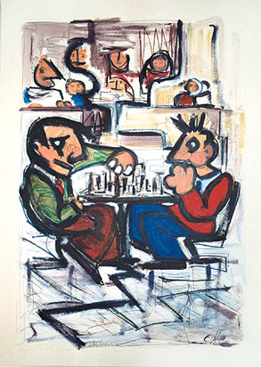 Chess Acrylic/Marking pen on paper 76x56 cm |
