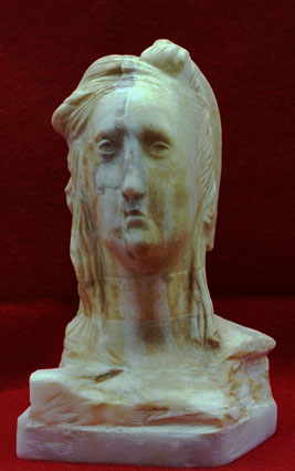 The duchess of Burgund after a party at Versaille Slices of mixed white marble glued to one solid piece.Dyed witj tea Height: 35 cm |