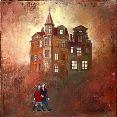 Evening walk Oil on canvas 30x30 cm