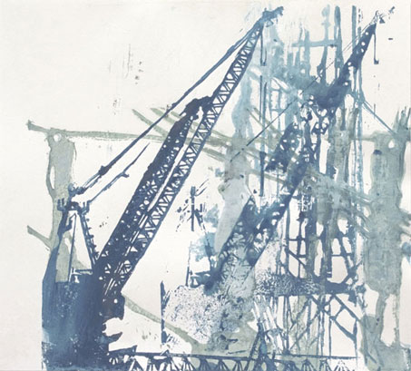 Hamburger Hafen,2005 Linoldruck und Guache auf Karton 19cm x 28cm |