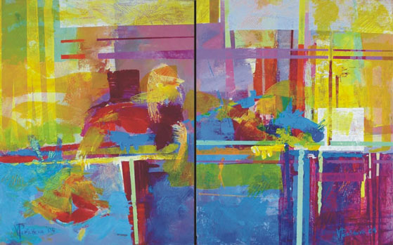 Colour Dynamics 1 & 2, 2004 Acrylics on 3D canvas, Diptychon 2x 50 x 40cm |